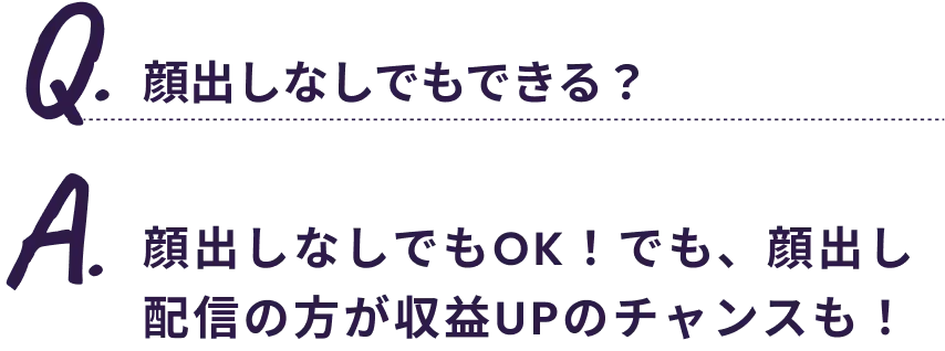 顔出しなしでもOK!でも、顔出し配信の方が収益UPにつながるかも!