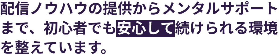 徹底サポートで安心!安全に楽しく配信できる環境を提供